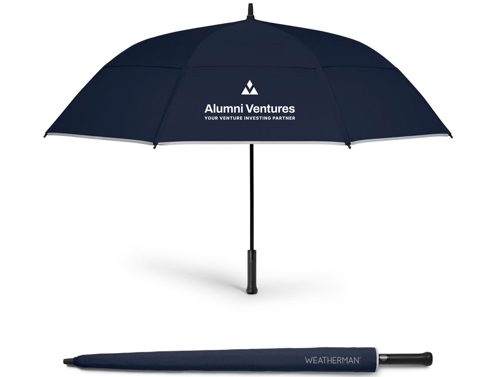 The Weatherman Golf umbrella is the perfect companion on the golf course. Industrial-strength fiberglass prevents breaking and inverting, and vented canopies withstand winds up to 55 mph. The water-repellent fabric keeps you dry, and the UPF 50+ barrier protects you from the sun, making Weatherman the perfect golf umbrella for rain – or shine. Features reflective accents that help keep you safe at night. A large mesh pocket offers handy storage, and a silicone-coated rib makes for an ideal place to hang your towel so it doesn’t slip off. Weatherman logo is printed on both one panel of the umbrella and on the included sleeve.